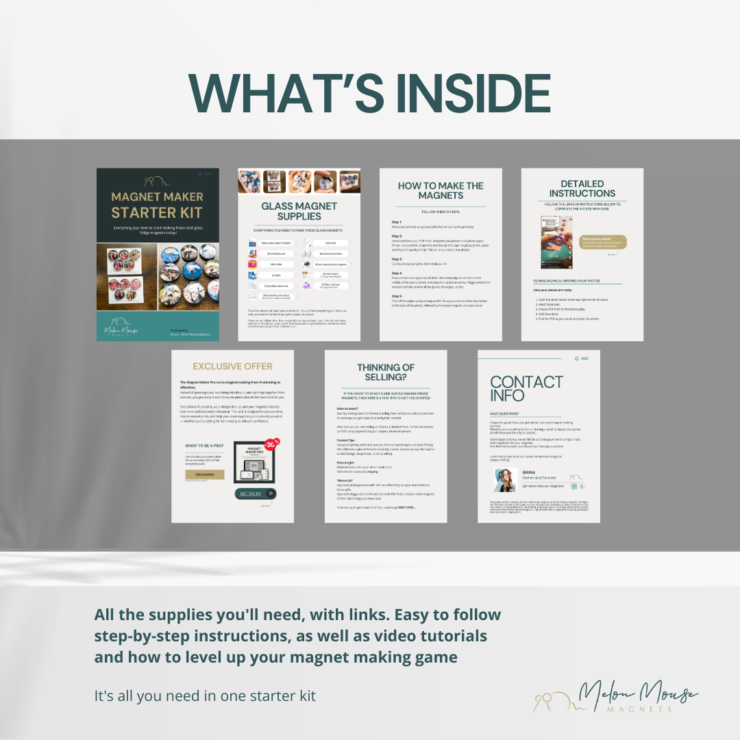 The Magnet Maker Starter Kit gives you everything you need to make your first beautiful glass magnet from home. No fancy tools, no confusing steps — just a simple, beginner-friendly guide that helps you go from “I want to try this” to “OMG I made this!” in minutes.